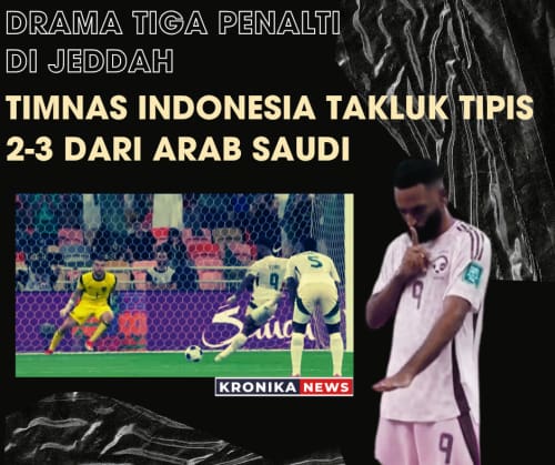 Jakarta, KronikaNews- Indonesia harus mengakui keunggulan tuan rumah Arab Saudi setelah takluk dengan skor tipis 2-3 dalam laga sengit pada Putaran Keempat Grup B Kualifikasi Piala Dunia 2026 Zona Asia. Pertandingan yang digelar di King Abdullah Sports City, Jeddah, pada Kamis dini hari (9/10/2025) WIB diwarnai drama tiga hadiah penalti dan satu kartu merah.