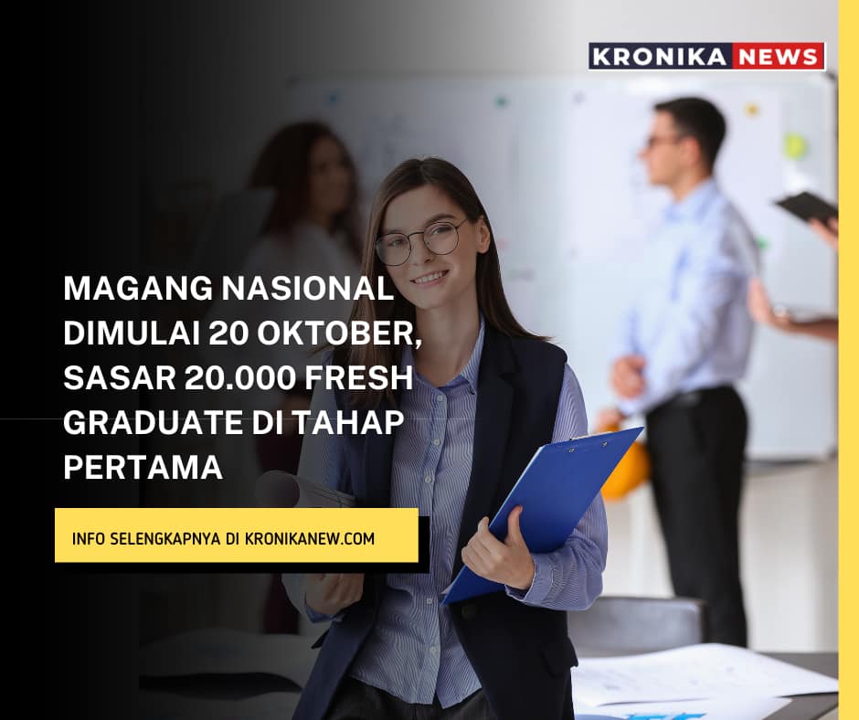 Jakarta, KronikaNews – Pemerintah akan mulai meluncurkan Program Magang Nasional tahap pertama pada 20 Oktober 2025 mendatang. Program ini ditujukan bagi 20.000 lulusan baru (fresh graduate) dari jenjang sarjana maupun diploma, dan akan terus diperluas secara bertahap.