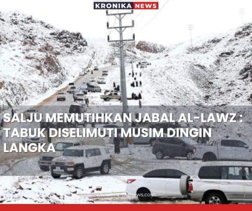 JAKARTA, KronikaNews.— Pegunungan Jabal Al-Lawz di wilayah Tabuk, Arab Saudi, diselimuti salju tebal pada Rabu (17/12/2025). Fenomena musim dingin ini terjadi di tengah suhu ekstrem yang dilaporkan turun hingga sekitar −4°C, disertai kabut tebal dan hembusan angin kencang yang membatasi jarak pandang.